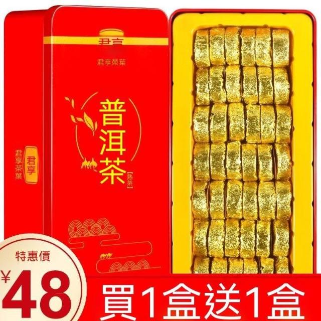 单单甄選糯米香普洱茶熟茶小沱茶葉1盒250克雲南小粒裝罐裝茶餅禮盒裝散茶