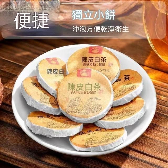 单单甄選景福山 陳皮白茶老樹壽眉白茶黃金陳皮老白茶陳皮小茶餅100g罐裝
