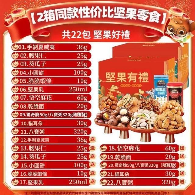 三隻松鼠堅果零食禮盒9包/18包健康零食禮包整箱送長輩年貨節禮品