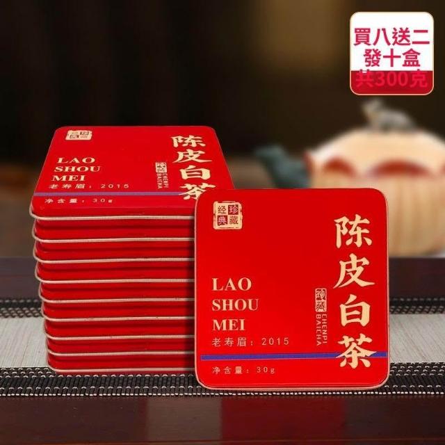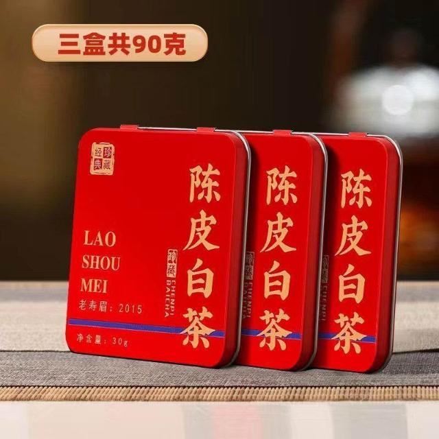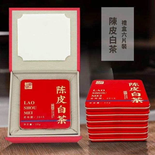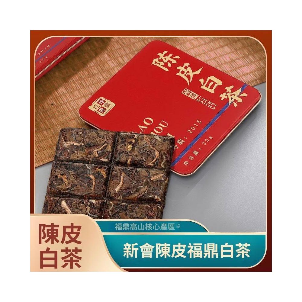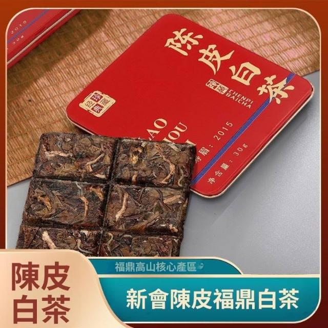 糯米甄選正宗新會陳皮白茶福鼎老白茶2015年壽眉正品鐵盒小方片高檔禮盒裝