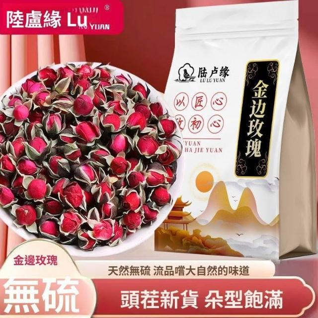 糯米甄選【陸盧緣】雲南金邊玫瑰花茶葉正品玫瑰乾花特級純天然女性養顏養生茶