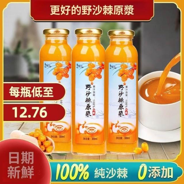 糯米甄選沙棘果純原漿內蒙鮮果生榨沙棘原漿沙棘無添加原汁果汁含果油正品