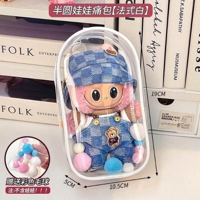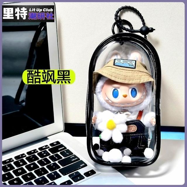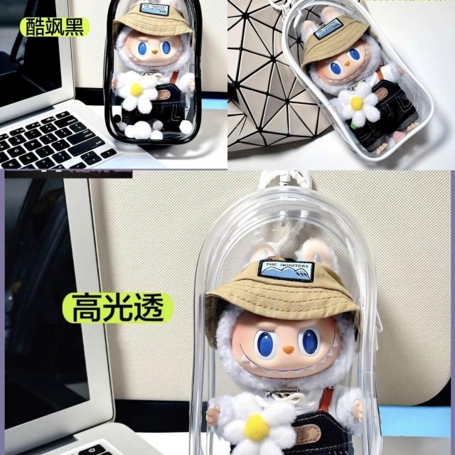 玩偶收納防塵袋 Labubu搪膠痛包 曬娃包 一代保護殼 玩偶掛飾包保護套 高清拉布布馬卡龍春天野防塵包 遛娃包