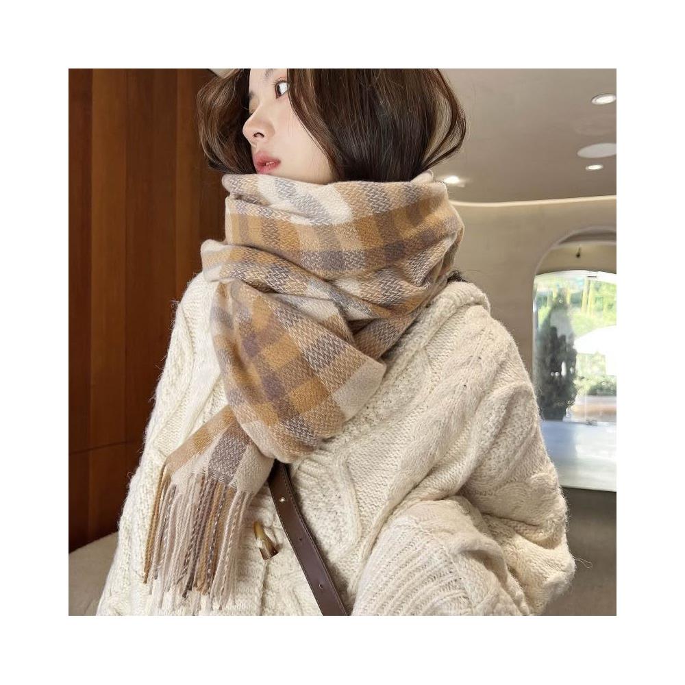 2025中長款加厚圍巾韓國甜美保暖仿羊絨圍巾格子披肩圍脖女高級感