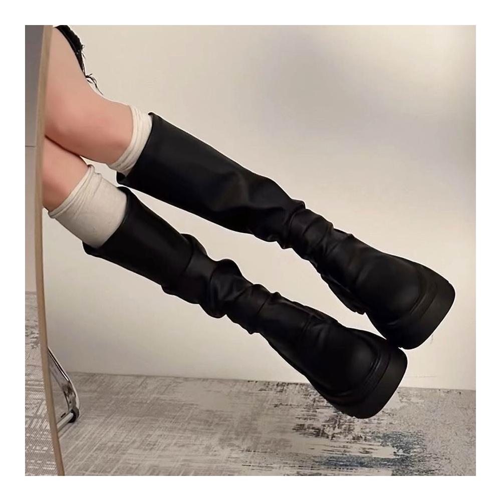 個性百搭全黑色長筒軍靴長靴 長筒靴 膝下靴 綁帶長靴 馬靴 綁帶長軍靴 軍靴 騎士靴