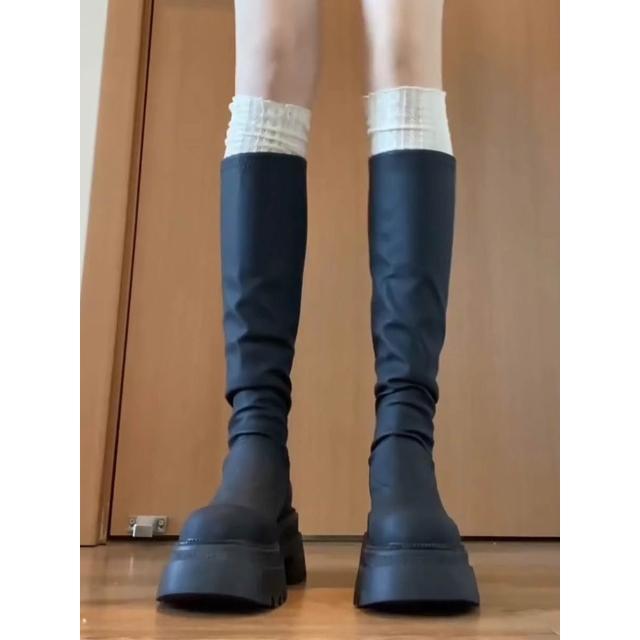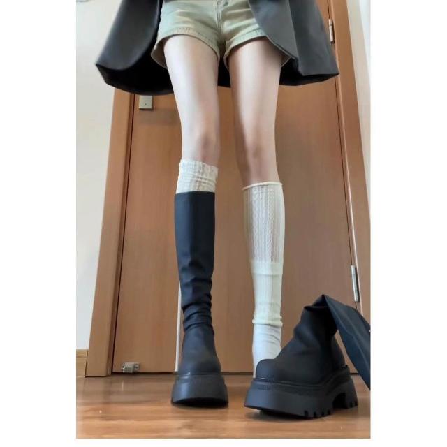 個性百搭全黑色長筒軍靴長靴 長筒靴 膝下靴 綁帶長靴 馬靴 綁帶長軍靴 軍靴 騎士靴