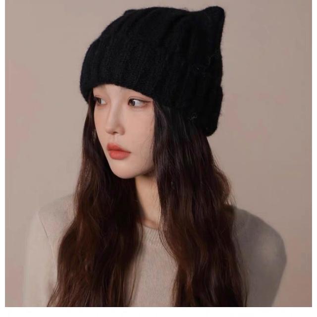 韓國新款可愛貓耳朵軟毛絨針織帽冷帽毛綫帽子女時尚百搭包頭帽潮