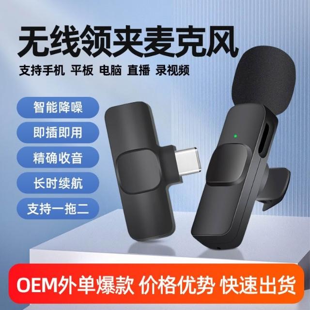 直播麥克風 一對二領夾式麥克風 降噪話筒手機收音器錄音 Type-c/平果接口 戶外錄視頻麥克風