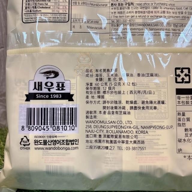 韓國 有名莞島海苔(5gx12入) 飯糰海苔片 韓國海苔 低鹽低油低鈉