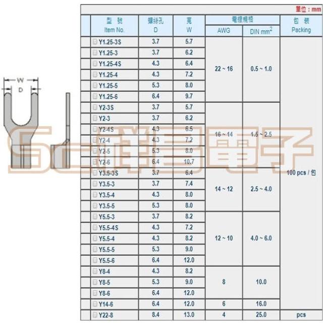 無絕緣 Y型/U型端子 1.25-5.5 多種規格 叉形 開口/壓接/裸/壓著端子 端子套管 (1入)