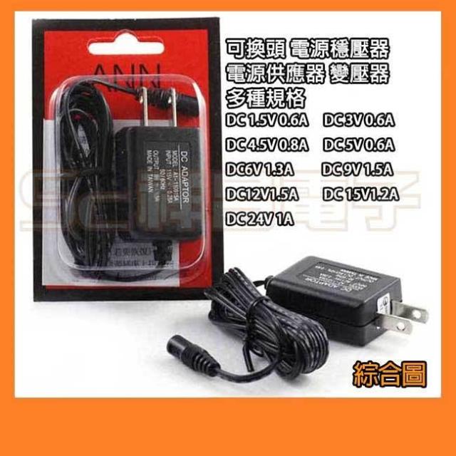 AC轉DC 電源供應器 穩壓器 變壓器1.5V 3V 5V 6V 9V 12V 24V 1A 1.5A (可換頭)