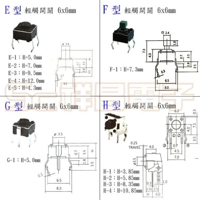 按鍵開關 按壓開關 小開關 輕觸開關 微動開關 方型開關 觸碰開關 觸摸開關 四腳開關 (單個)