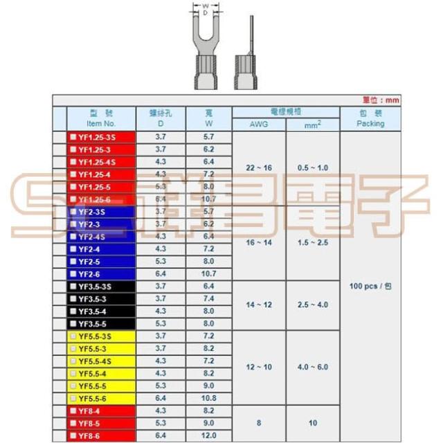 1.25到5.5 Y型端子 U型 叉形 開口端子 有絕緣 加護套 半絕緣端子 壓接端子 壓著端子 端子套管