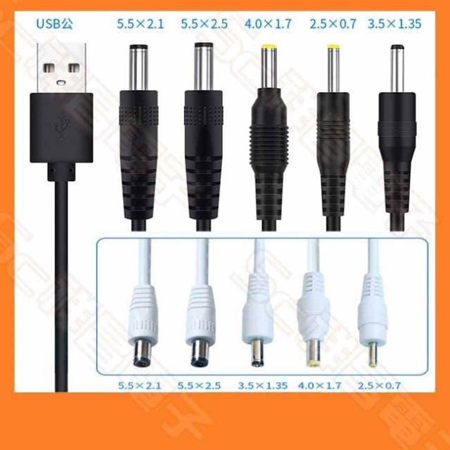 USB 轉 DC 電源線 2.1/2.5/1.35/1.7/0.7 充電線/供電線/轉接線 (黑色/白色)