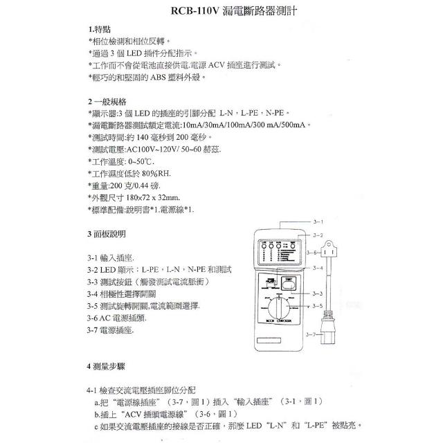 Lutron 路昌 RCB-110V 漏電斷路器測試計 漏電斷路測試器 漏電 斷路 測試