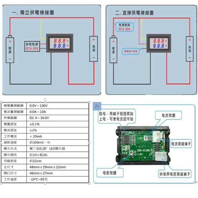 三位元雙顯示 LED直流電壓/電流表頭 表頭 錶頭 DC100V/10A
