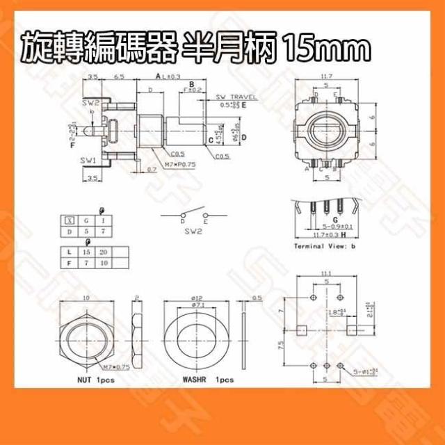 EC11 旋轉編碼器 編碼開關 電位器 數位可變電阻 帶按壓開關 5腳 半月柄/梅花炳 15mm/20mm