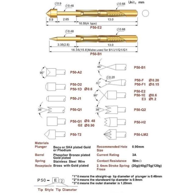 P50系列 探針 測試頂針 彈簧針 伸縮彈簧頂針 pcb電路板探針 測試針 彈簧頂針 套管 (單支)