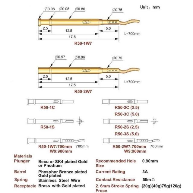 P50系列 探針 測試頂針 彈簧針 伸縮彈簧頂針 pcb電路板探針 測試針 彈簧頂針 套管 (單支)