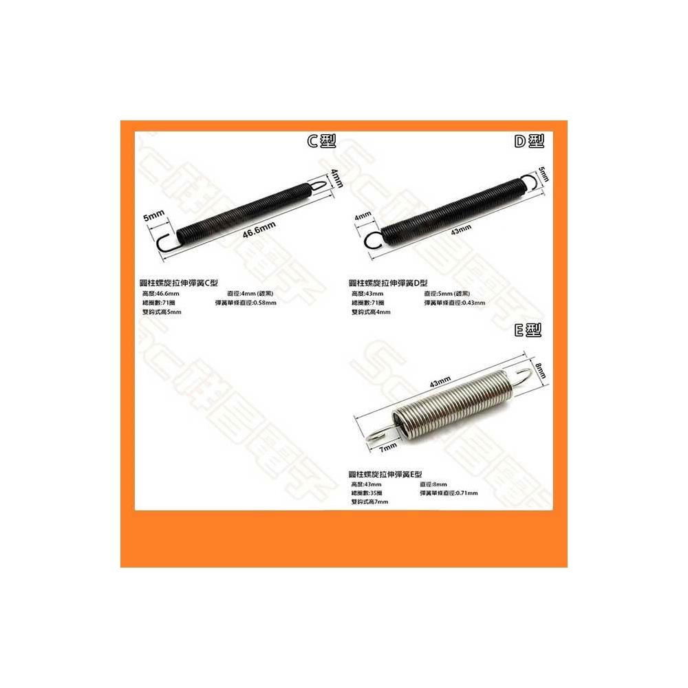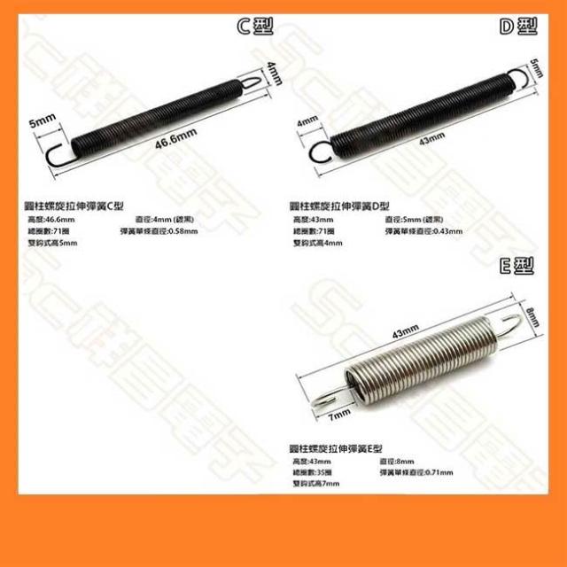 4種圓柱螺旋拉伸彈簧 圓柱形彈簧 彈簧 拉伸 小彈簧 C / D / E 型 (單顆)