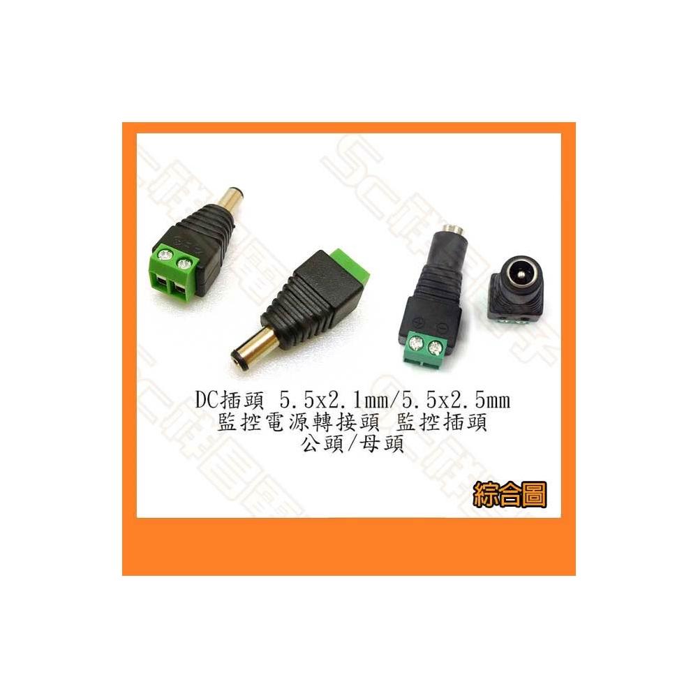 免焊接 DC插頭 5.5*2.1mm / 5.5mm x 2.5mm 監控電源轉接頭 監控插頭 公頭/母頭