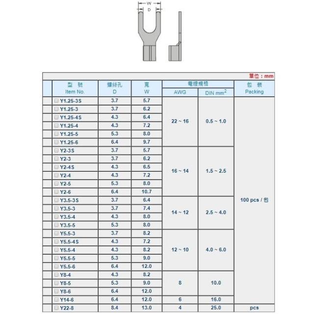 1.25-5.5 無絕緣U型/Y型/叉形端子 開口端子/壓接端子/壓著端子/裸端子 (100入/包)
