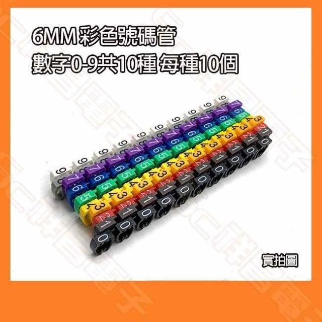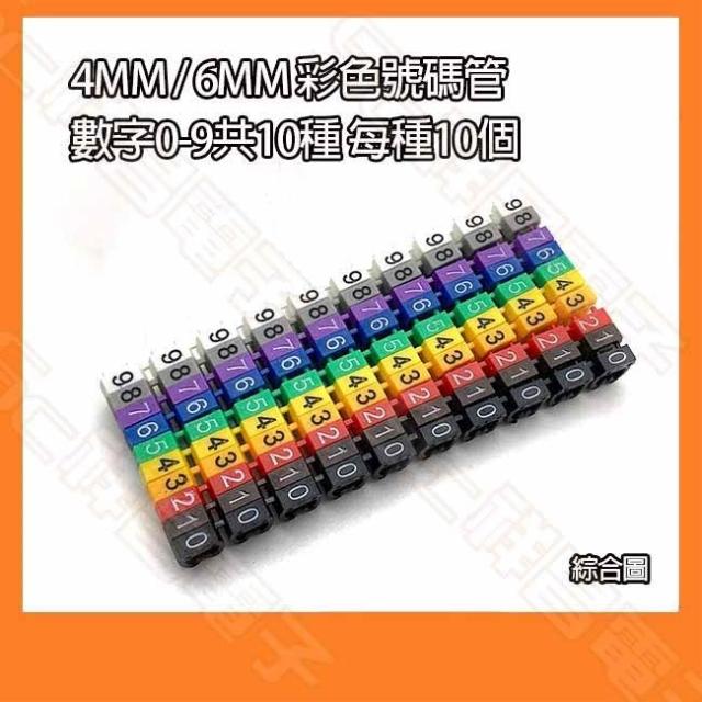 4MM/6MM 卡扣式 彩色數字號碼管0-9共10種 每種10個 線材標示牌 彩色號碼管 卡扣號碼管
