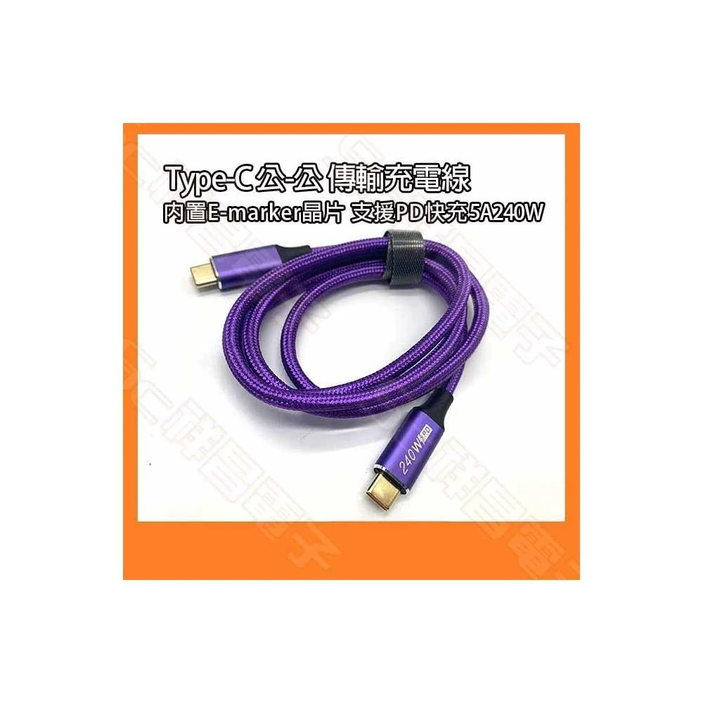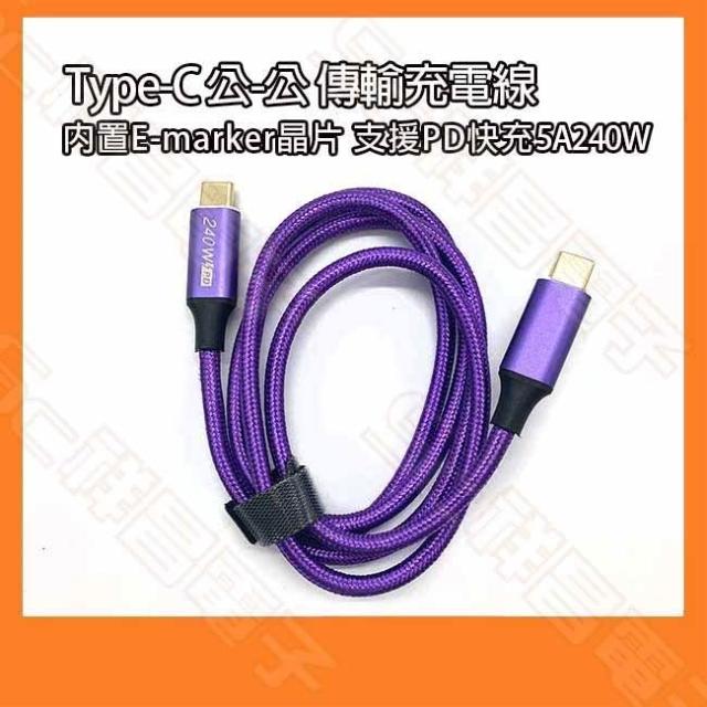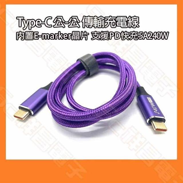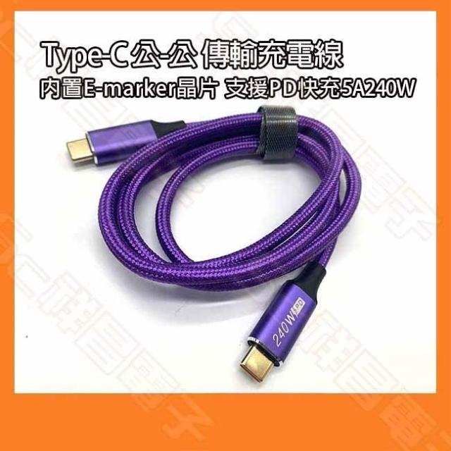 Type-C 公-公 5A240W傳輸充電線 傳輸線 內置E-marker晶片 PD快充 480Mbps 公對公 1M