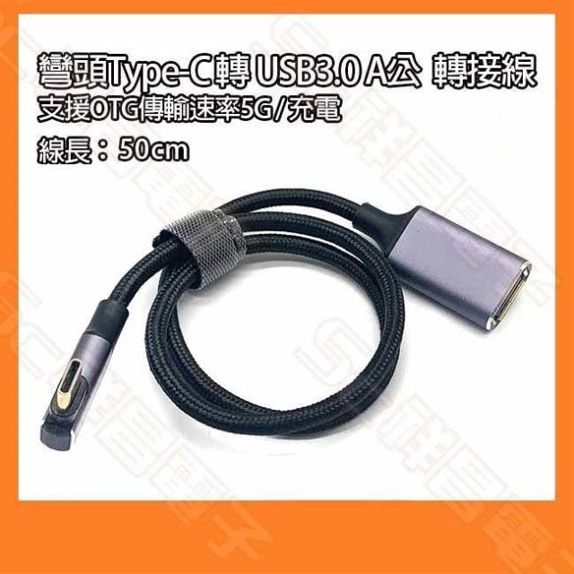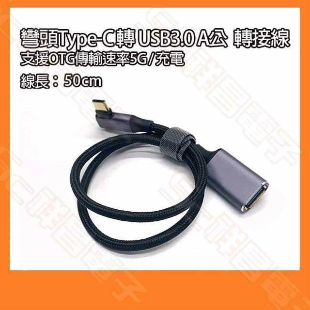 彎頭Type-C 轉 USB3.0 A公 OTG轉接線 C公轉A公 Type-C公 USBA公 L型 90度 50CM