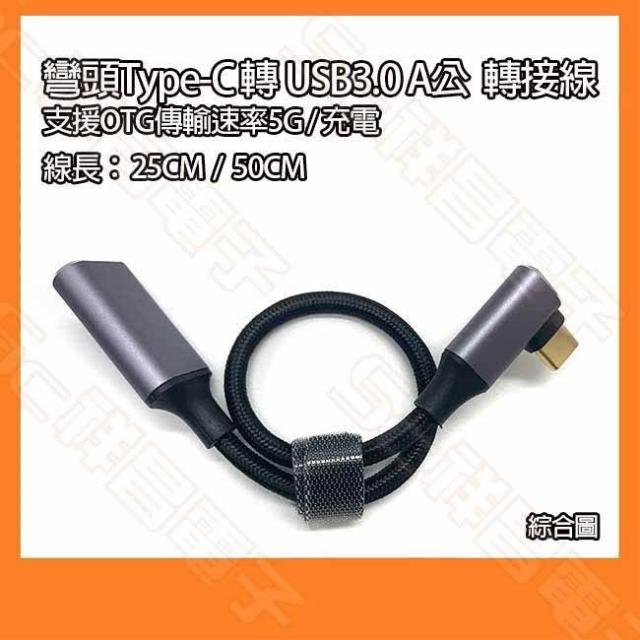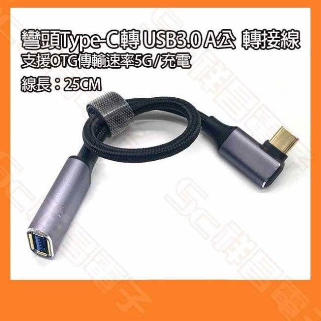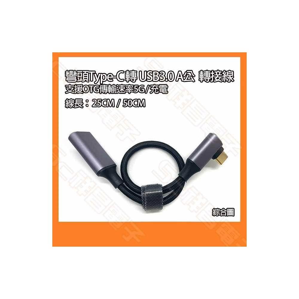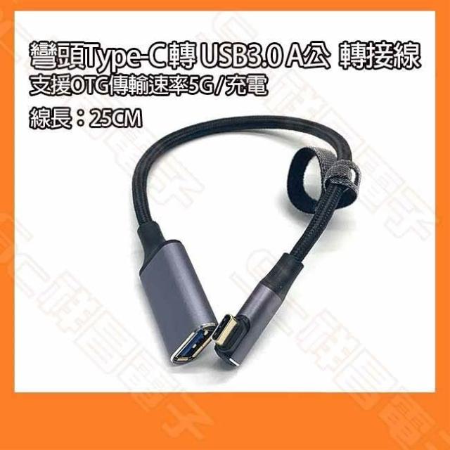 彎頭Type-C 轉 USB3.0 A公 OTG轉接線 C公轉A公 Type-C公 USBA公 L型 90度 25CM