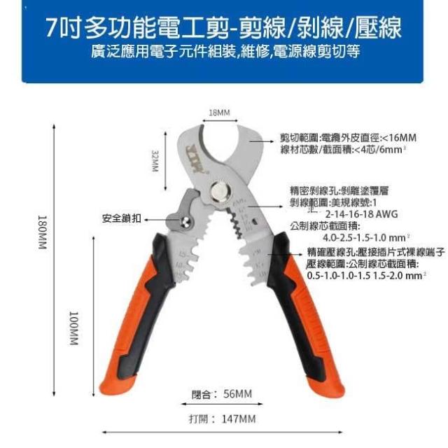 YTH-S070409 多功能 7吋 線剪 電纜鉗 電纜剪 破壞剪 電線剪 工具剪 剪線鉗 斷線鉗