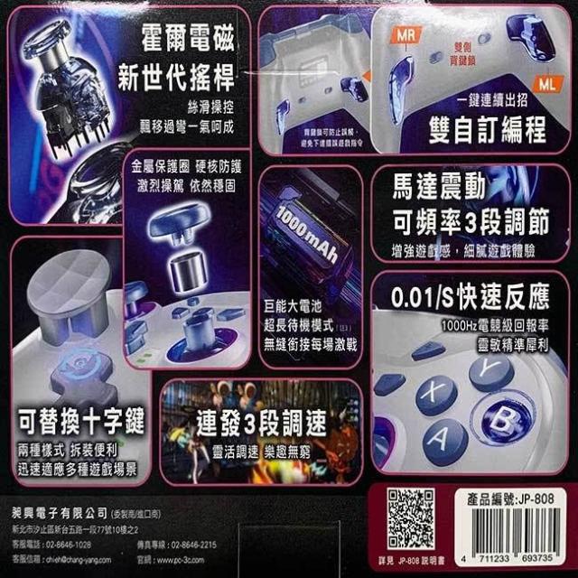 iLeco JP-808 雷厲風行三模遊戲手把 無線手把 藍牙手把 霍爾板機 霍爾搖桿 Switch 夜神 雷電