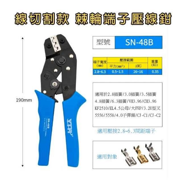 YTH SN-48B 線切割款 棘輪端子壓線鉗 壓接鉗 端子鉗 壓著鉗 壓線鉗 網路鉗 壓接工具鉗