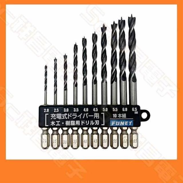 FUNET FU-1190W 日式六角柄木工鑽尾 木工用 六角軸工 各種鑽頭 鑽頭 五金工具 10支組