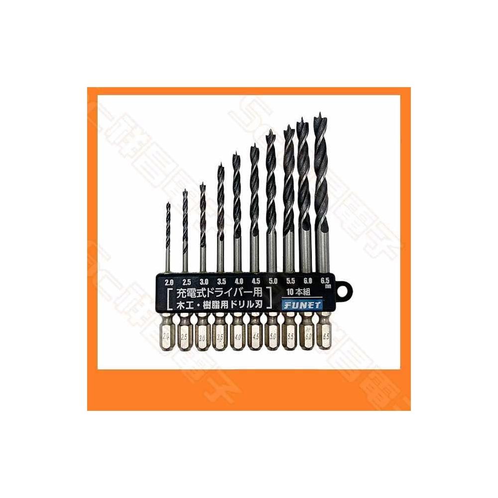 FUNET FU-1190W 日式六角柄木工鑽尾 木工用 六角軸工 各種鑽頭 鑽頭 五金工具 10支組