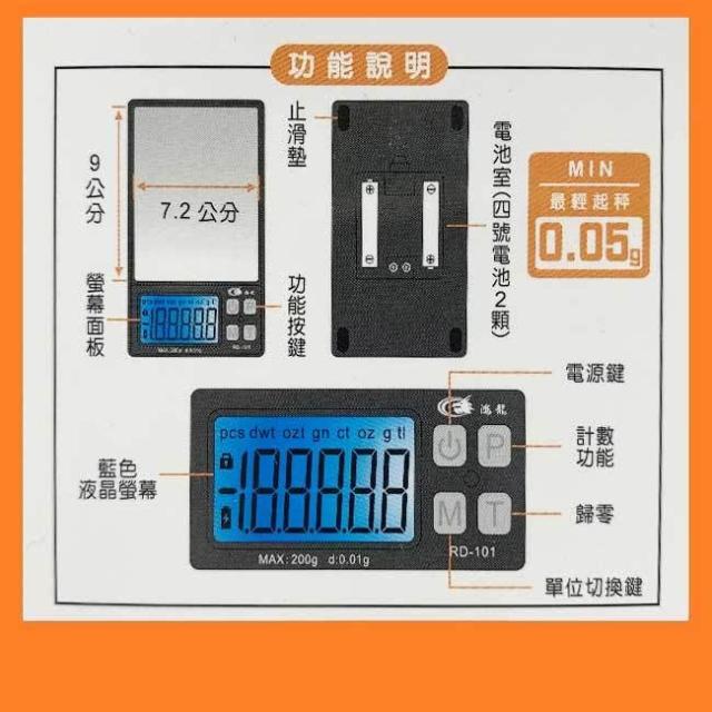 鴻龍 RD-101 超精準 0.01克 7單位 大秤盤 超微量 電子秤 大螢幕 珠寶秤 烘焙秤 茶葉秤
