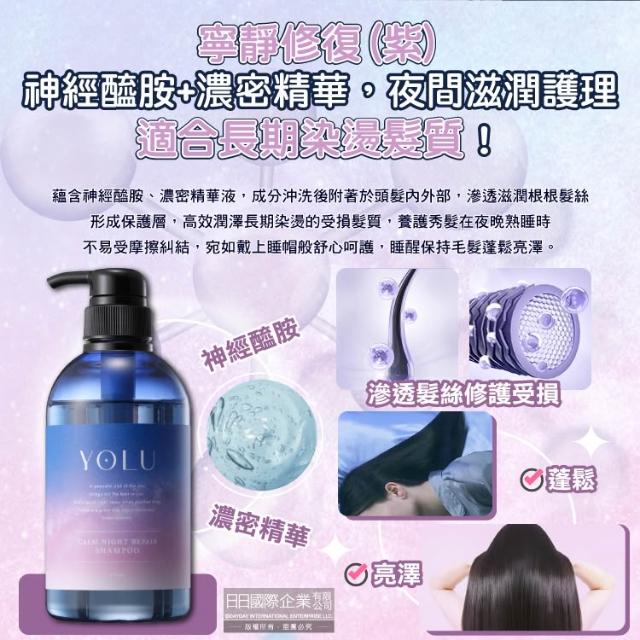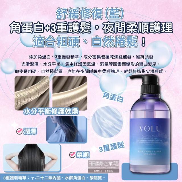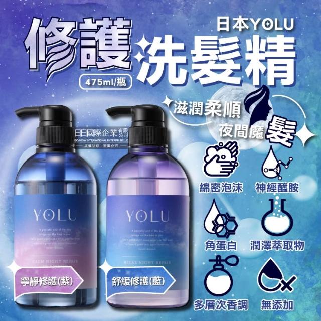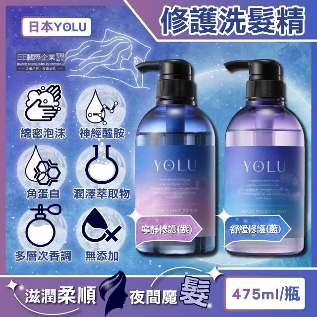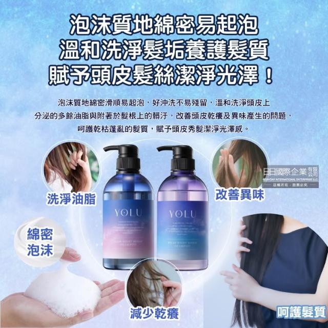 日本YOLU-夜間密集滋潤柔順多層次香氛精華修護洗髮精475ml/瓶(養髮潤澤露,美容液護髮素,防頭皮味洗髮水,無添加矽