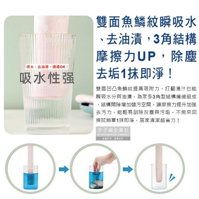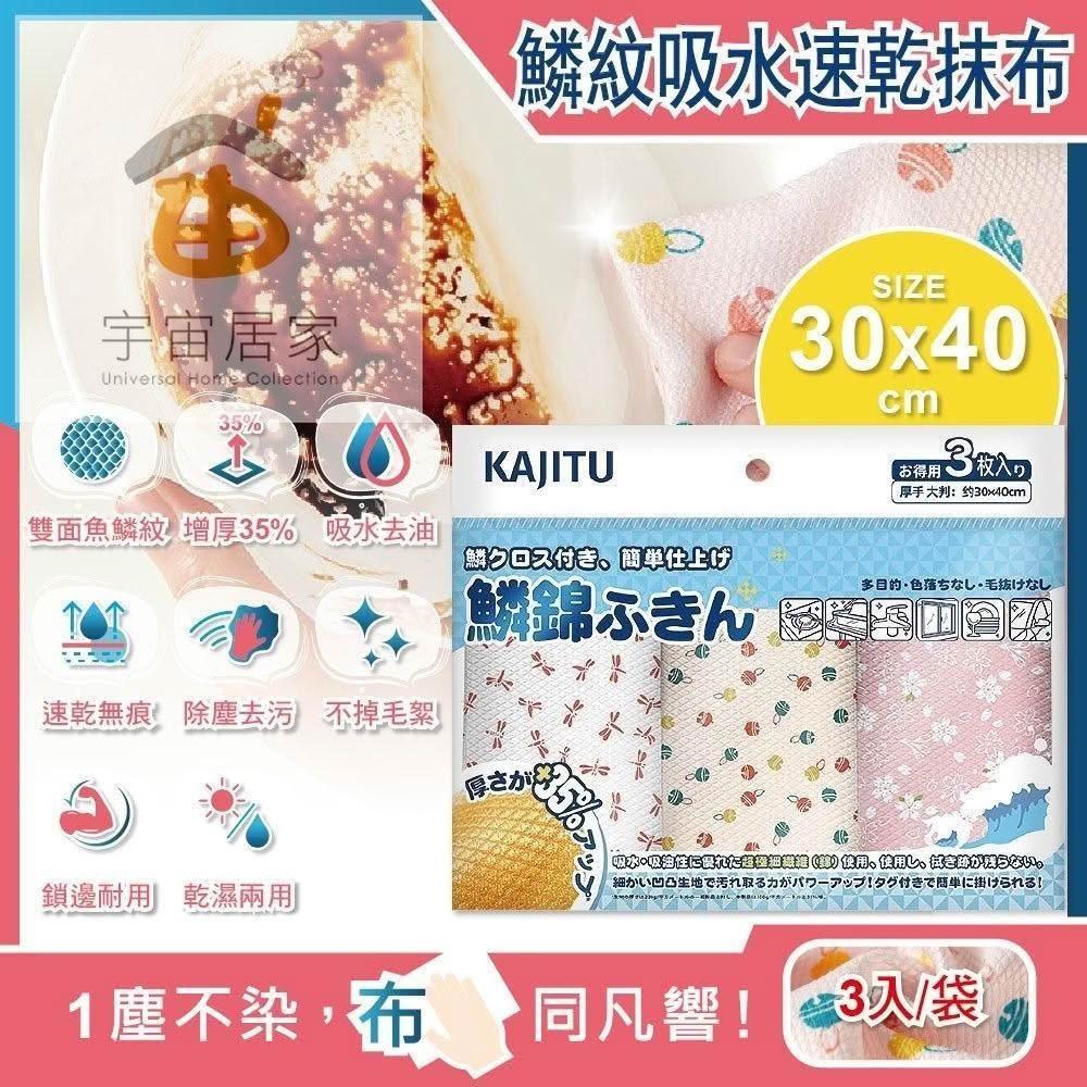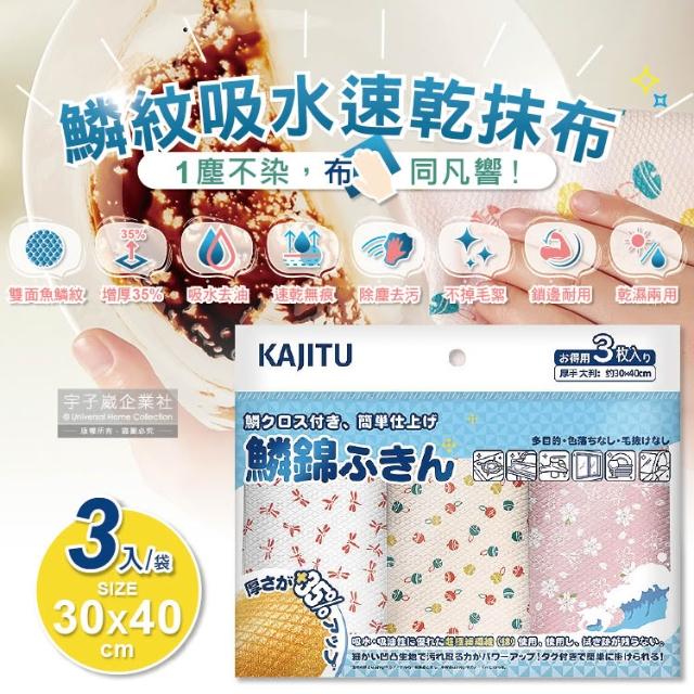 日本 Kajitu 魚鱗紋 抹布 3入 乾濕兩用 雙面凹凸 和風 印花 吸水 速乾 無痕 除塵 吸油 不掉絮 百潔抹布
