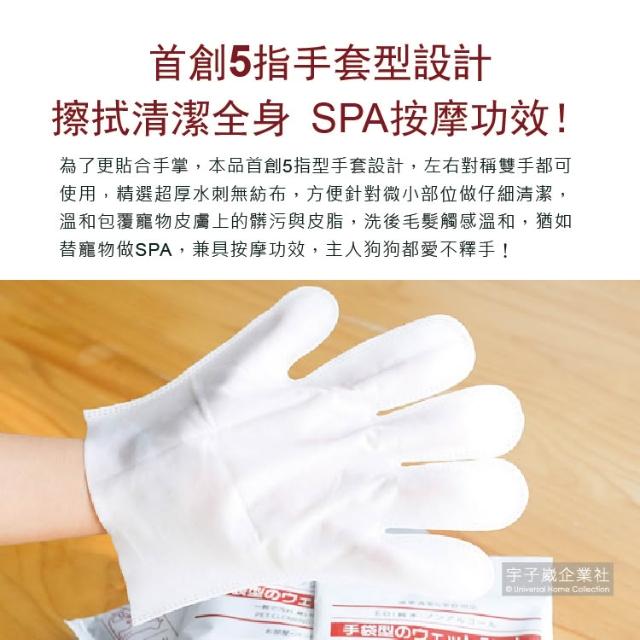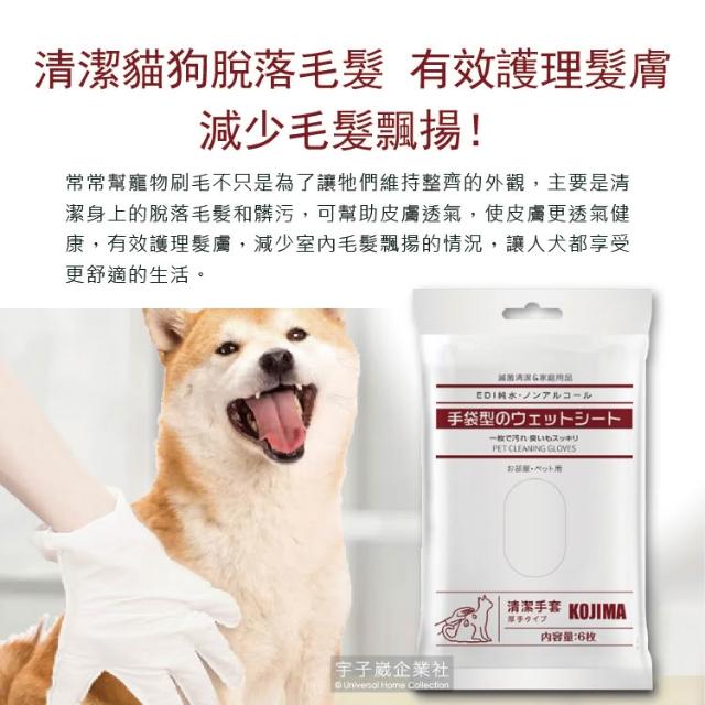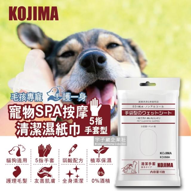 KOJIMA日本寵物SPA按摩清潔手套 6入/袋 全身清潔護理毛髮 5指手套型濕紙巾 寵物濕紙巾 貓咪清潔 狗狗清潔 護理毛髮