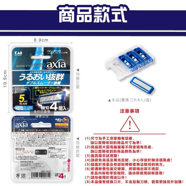 KAI 貝印日本axia 男士修容刮鬍刀組AX-5SE 刀片補充組BSE-4AX1 手動防滑可替換剃鬚刀 鬢角美型去鬍渣刮鬍刀