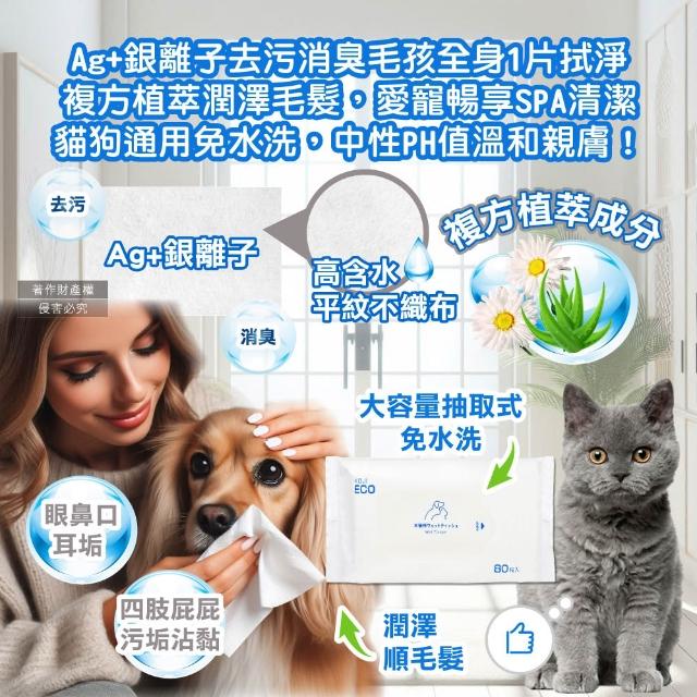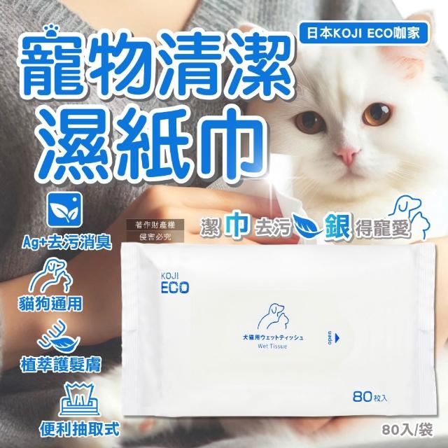 KOJIMA日本咖家 Ag+銀離子寵物清潔濕紙巾 80入/藍標袋 貓狗全身擦澡濕巾 毛孩出遊必備 潤澤順毛 拭淨眼耳口鼻四肢臀部