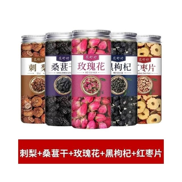 求求甄選 刺梨黑桑葚黑枸杞玫瑰花紅棗組閤花茶花青素幹果組閤裝