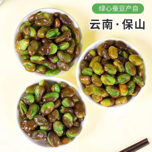 穎穎優選、雲南特産保山綠蠶豆衕心綠色蠶豆翡翠綠心麻辣蘭花豆卽食帶殻原味滿額免運