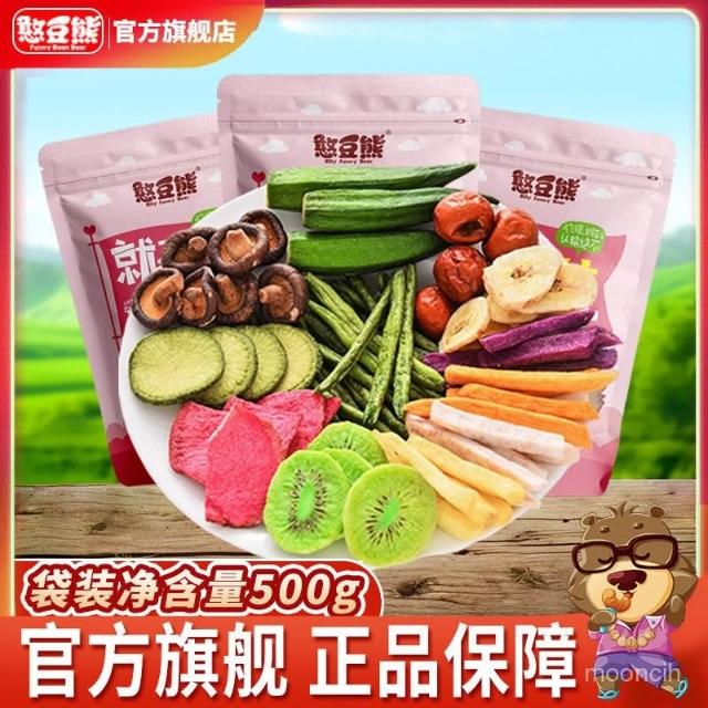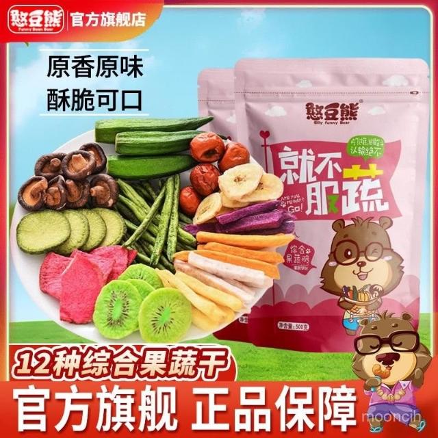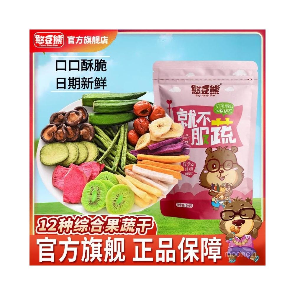 檢檢優選 憨豆熊綜閤果蔬脆250g袋裝凈重12種配比蔬菜幹水果幹休閒零食