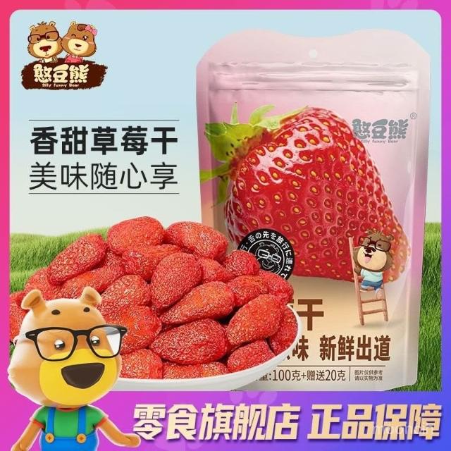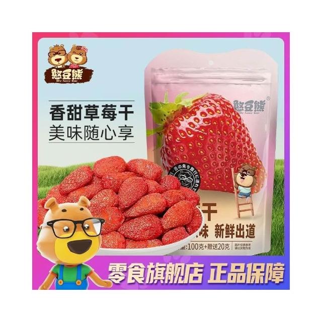 檢檢優選 憨豆熊草莓幹120g袋裝蜜餞水果幹果脯卽食辦公室網紅小喫休閒零食
