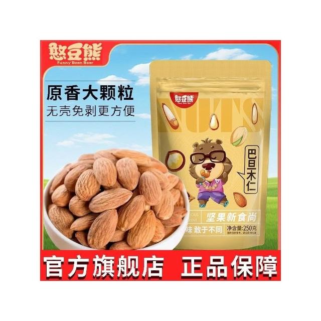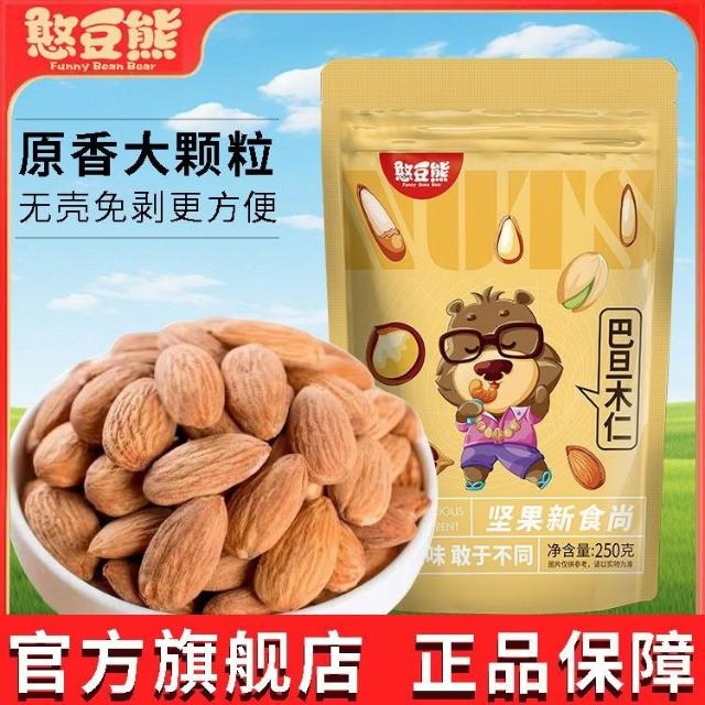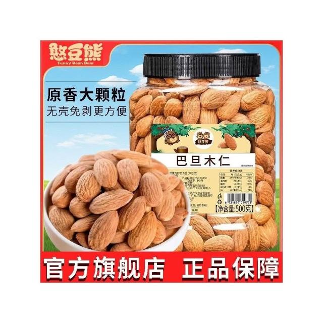 檢檢優選 憨豆熊新貨巴旦木仁500g凈重大罐裝扁桃杏仁無殻卽食堅果零食