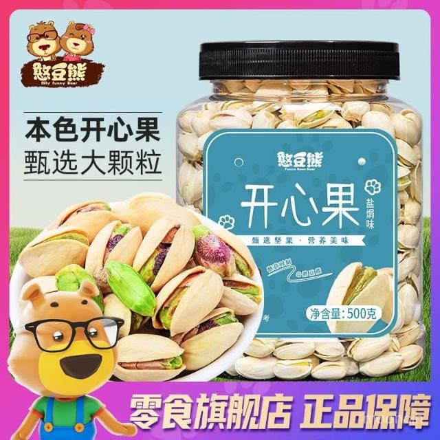 檢優選 【1484.3萬人收藏該品牌憨豆熊開心果500g罐裝凈重不漂白新貨大顆粒堅果炒貨年貨零食120g
