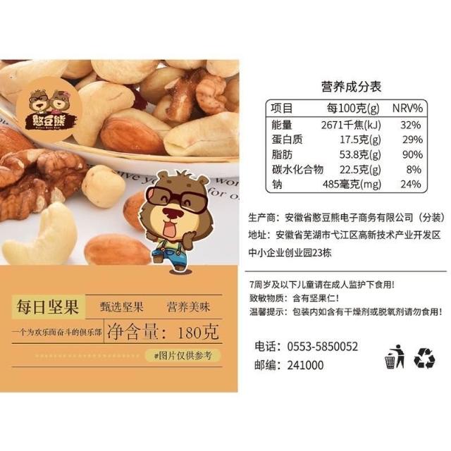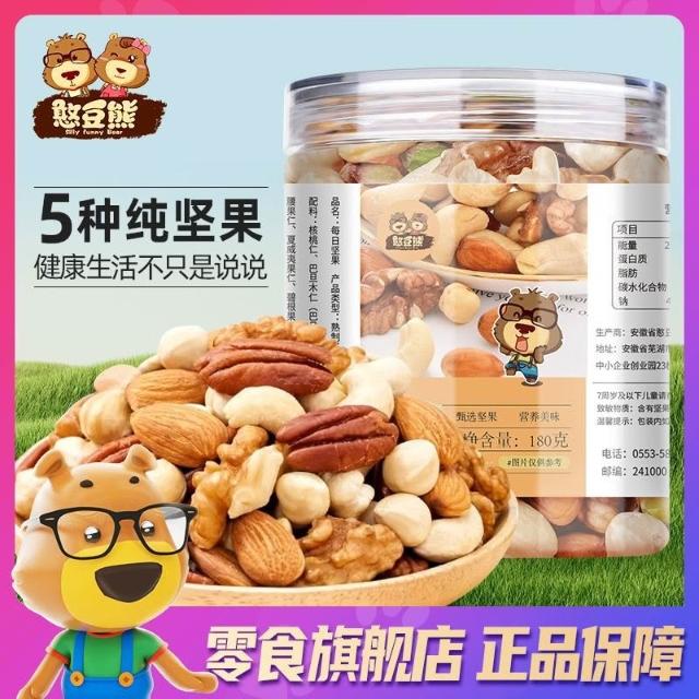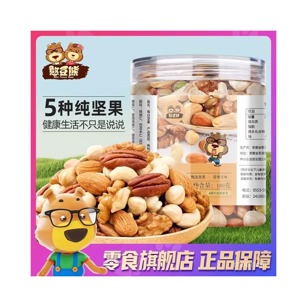 檢優選 【1460.6萬人收藏該品牌憨豆熊每日堅果純堅果180g/罐裝混閤堅果休閒零食混閤幹果仁