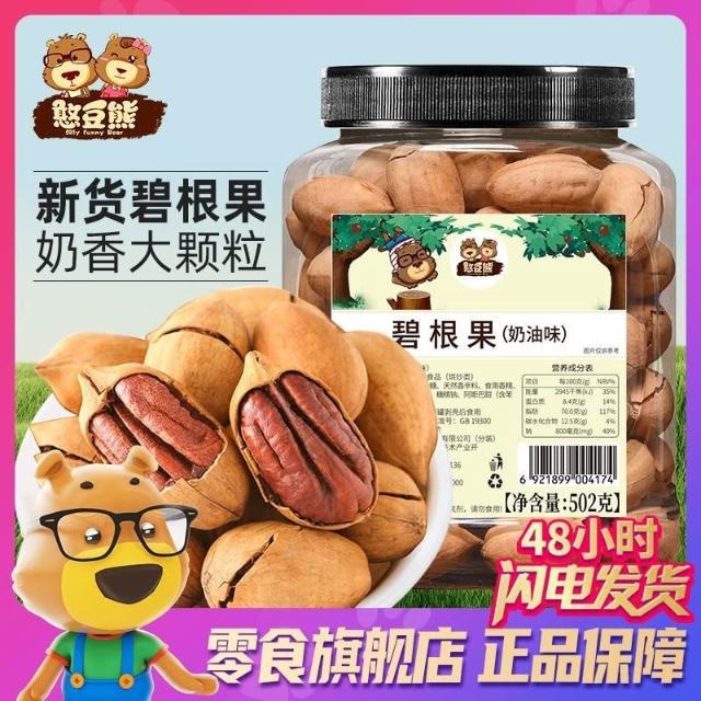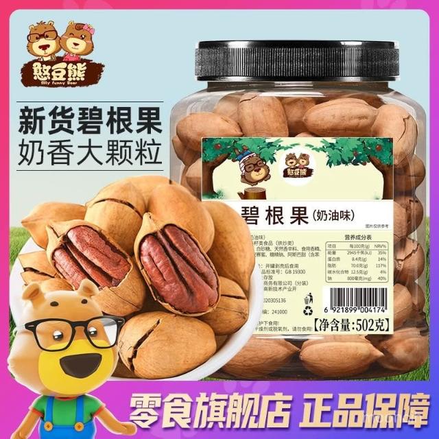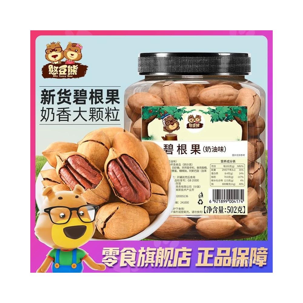 檢檢優選 憨豆熊碧根果502g/罐裝幹果堅果仁奶油味山核桃長壽果休閒小零食