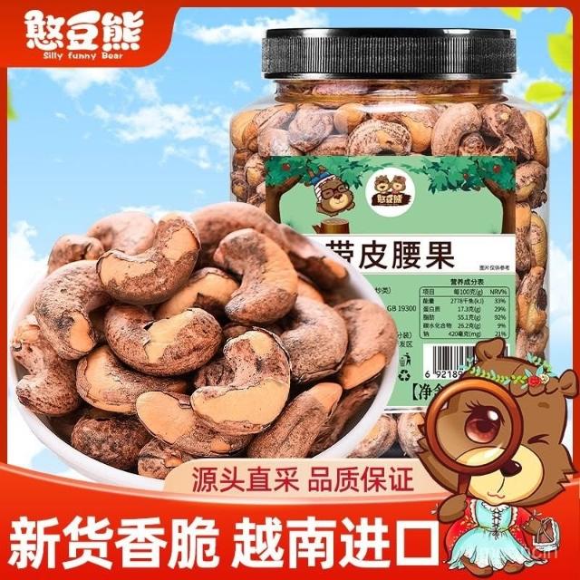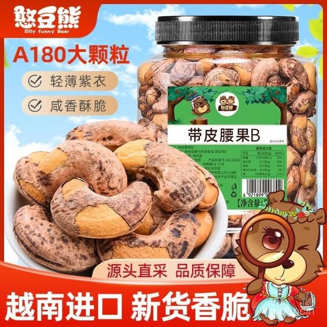 檢檢優選 憨豆熊帶皮腰果仁502g罐裝越南新貨大顆粒紫皮堅果幹果零食品